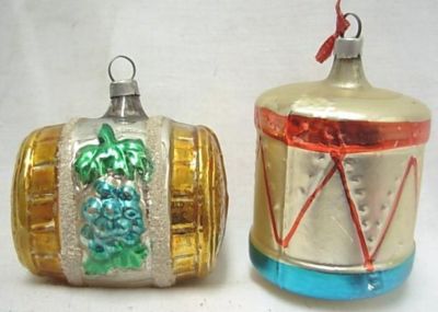 Title (ebay affiliate link): Old Christmas Ornaments WINE BARREL & PATRIOTIC DRUM