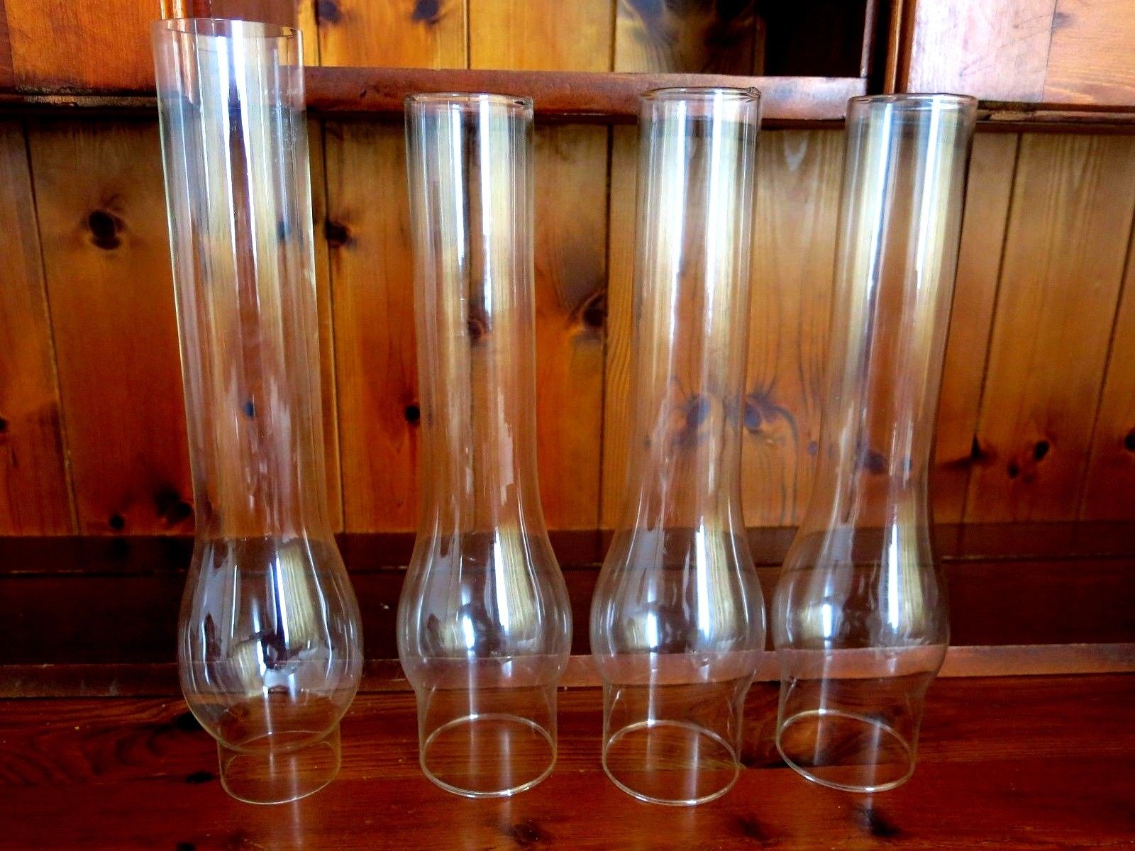 Title (ebay affiliate link): 4 VINTAGE GLASS OIL LAMP CHIMNEY FLUTE SHADES 11 1/2 INCH TALL BY 2 1/2 BURNER F
