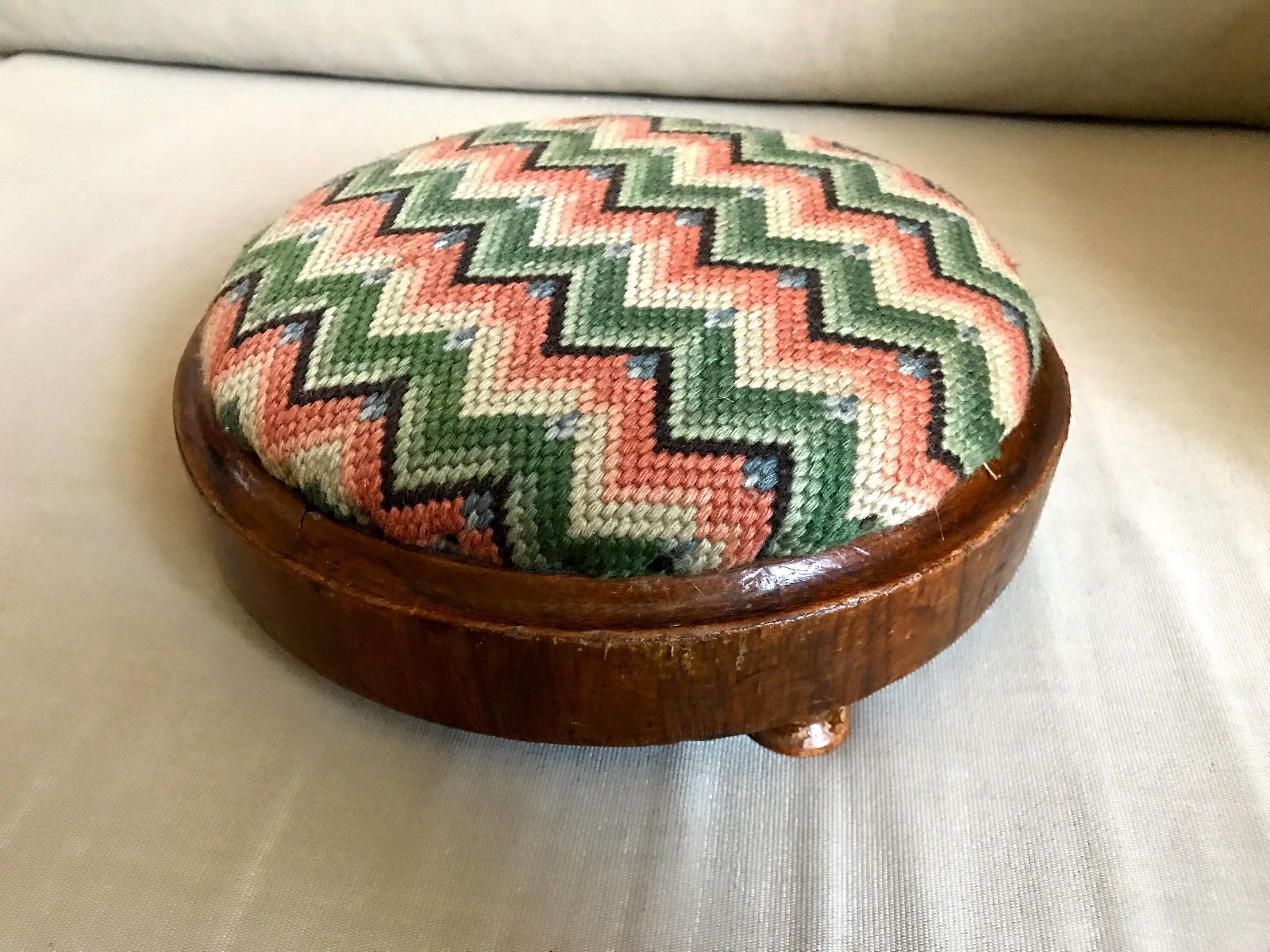 Title (ebay affiliate link): Antique Crocheted Solid Wood Footrest / Foot stool
