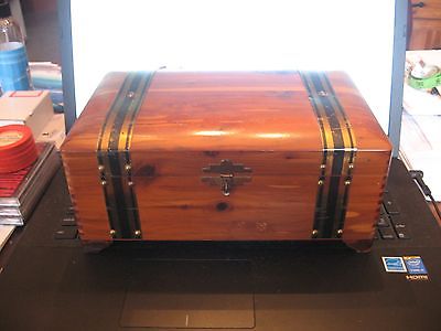 Title (ebay affiliate link): VINTAGE CEDAR DOVETAIL TRINKET JEWELRY BOX 6 X 10 X 5 INCHES TALL AND MIRROR