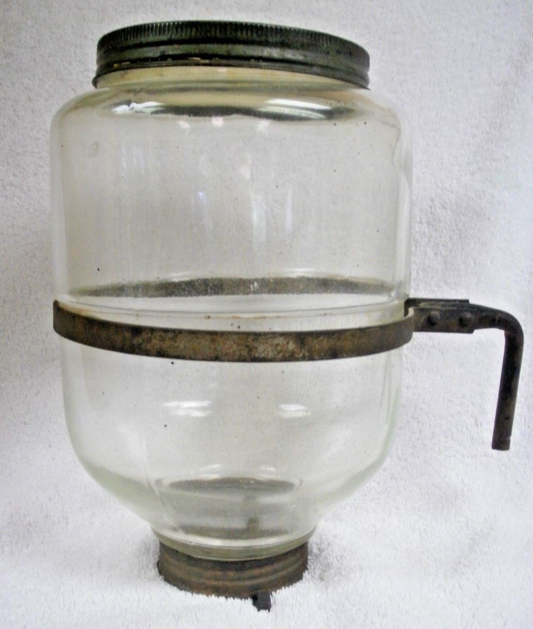 Vintage Glass Jar with Metal Lids and Hook maybe a Hoosier flour/sugar canister?
