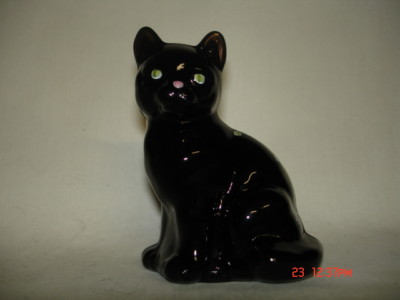 Fenton Sitting Cat - Copper Roses Black Milk Glass