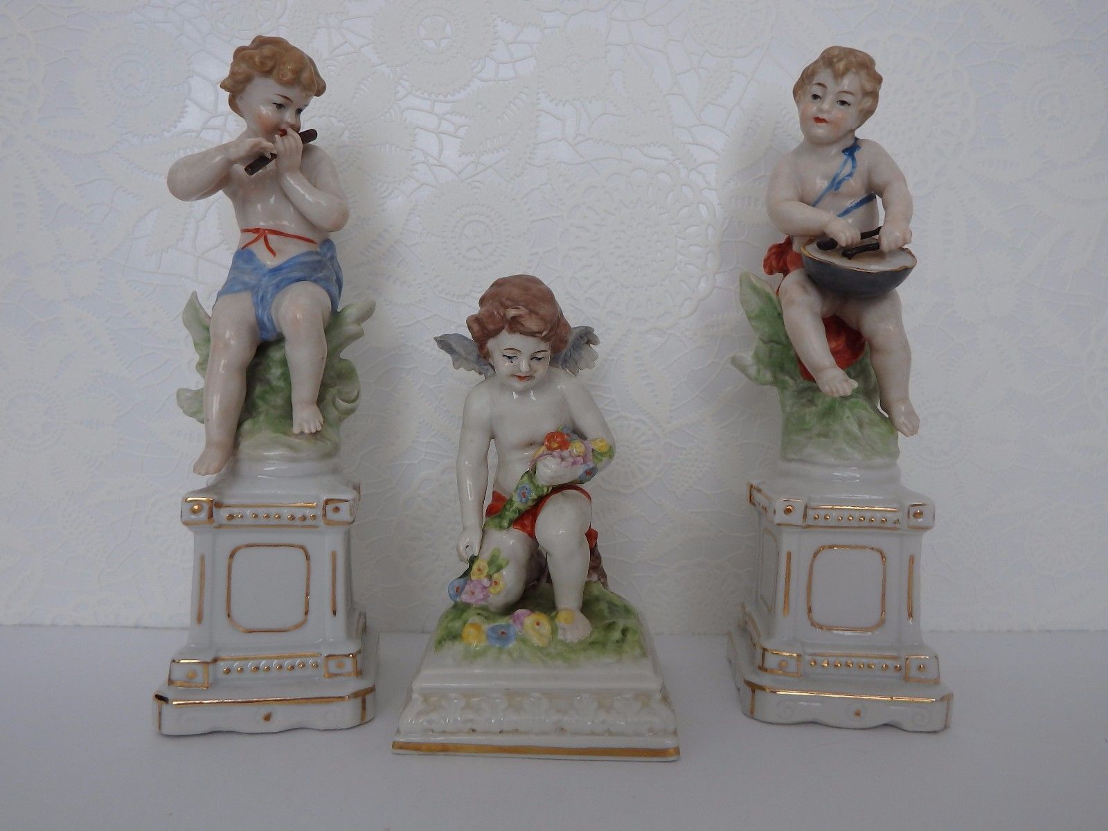 Title (ebay affiliate link): Trio of Antique German Scheibe Alsbach Music Angel Cherub Porcelain Figurine.