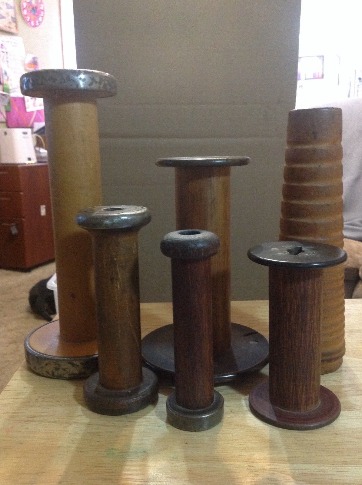 6 Vintage Antique Textile Bobbin Wood WOODEN SPOOLS - Candlesticks