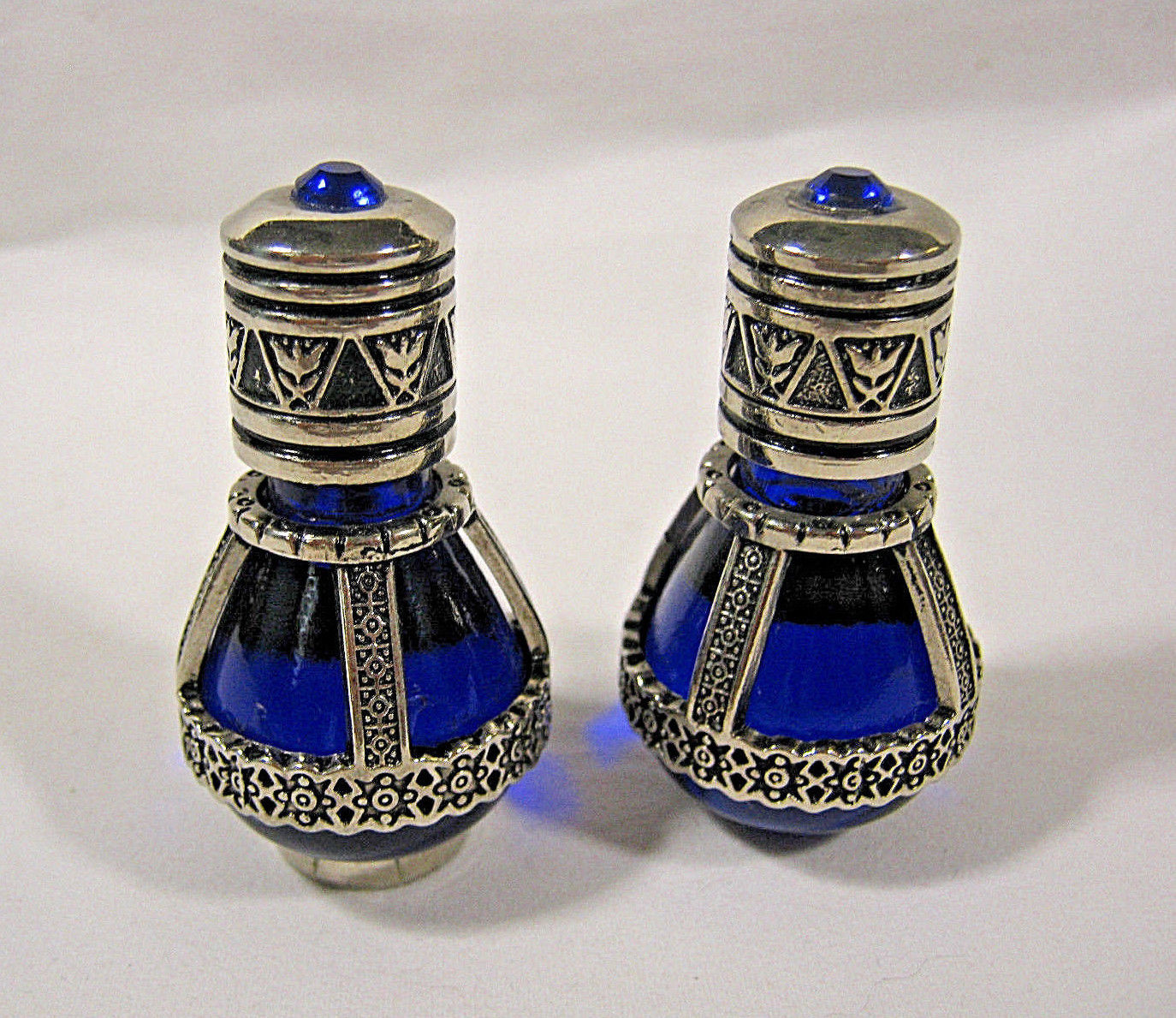 2 Vintage Cobalt Blue Sapphire Crystal Perfume Bottles