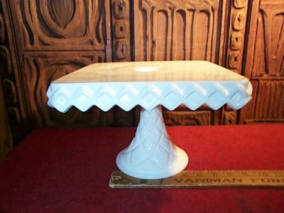 White Milk Glass Pedastal Square Cake Plate Diamond