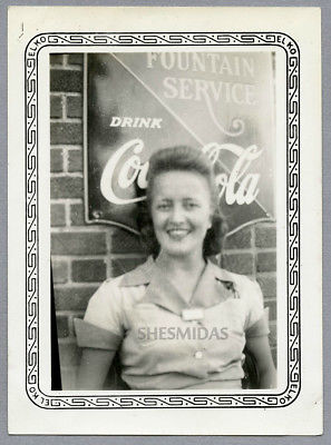 Title (ebay affiliate link): #372 Waitress By the Porcelain COCA COLA Sign, Woman, Vintage Photo