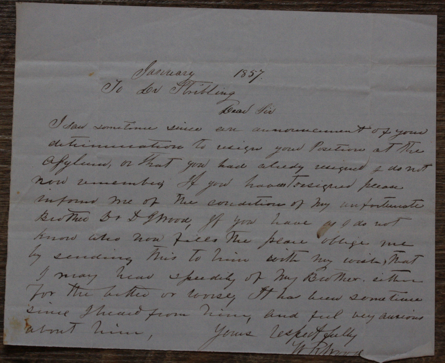 Title (ebay affiliate link): 1857 WESTERN LUNATIC ASYLUM - Dr. D.J. Wood a Patient / Stribling Resigning?