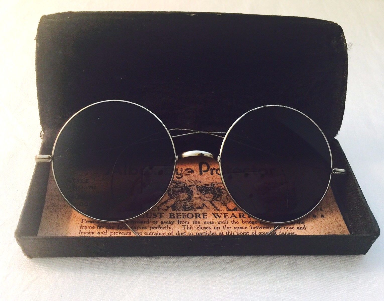Title (ebay affiliate link): Antique / Vintage Silver Tone LENNON Look GREEN Sunglasses with Oriiginal Case