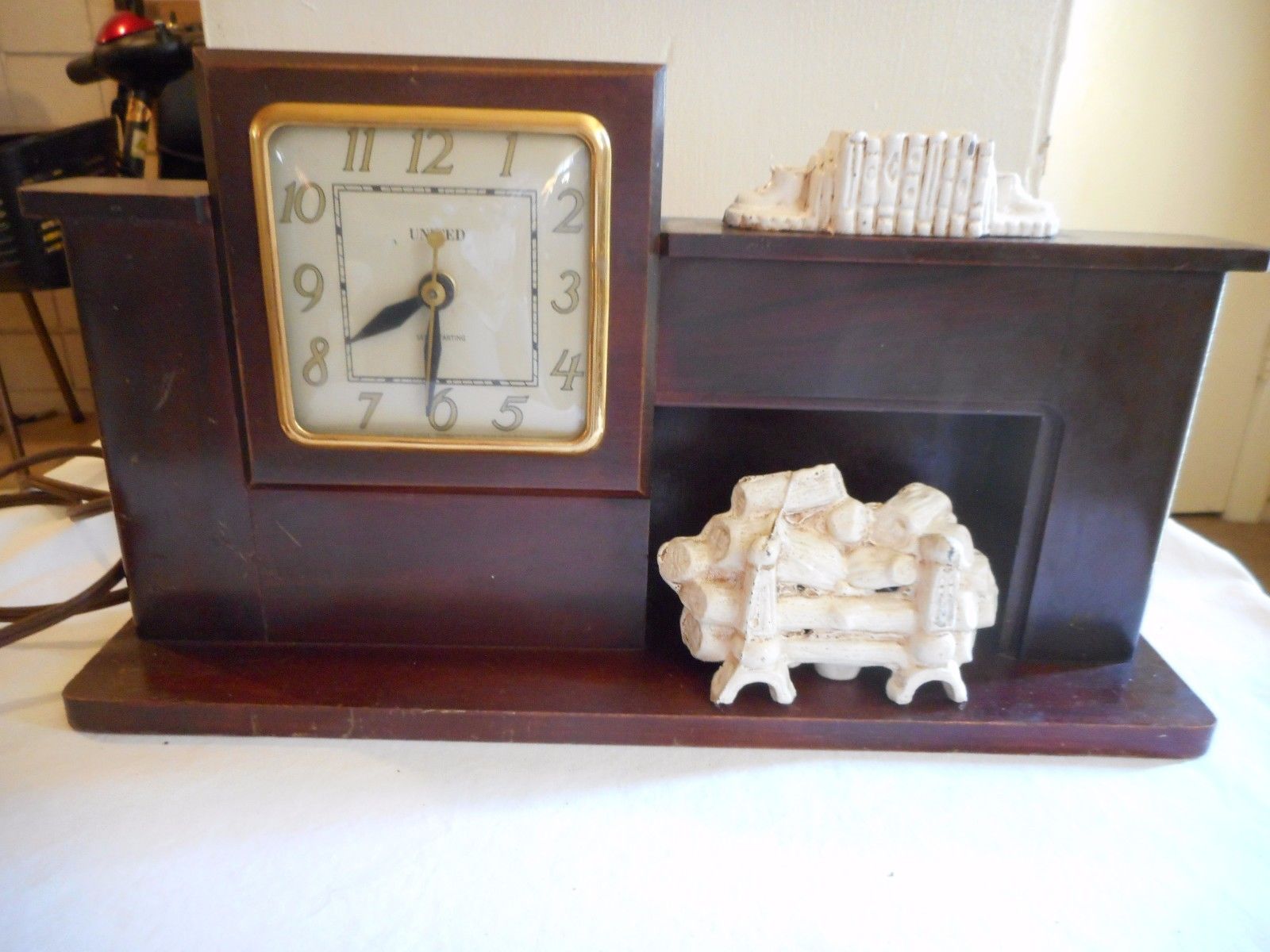 Title (ebay affiliate link): Vntg/Antique United Mantel Clock Model 420--Lit Fireplace