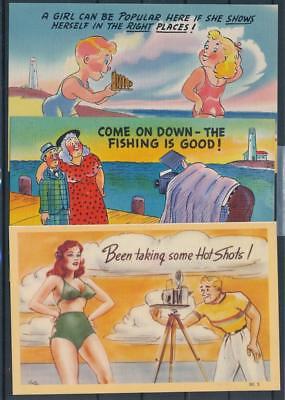 [G42140] USA Woman Camera humorous 3 good old postcards Very Nice