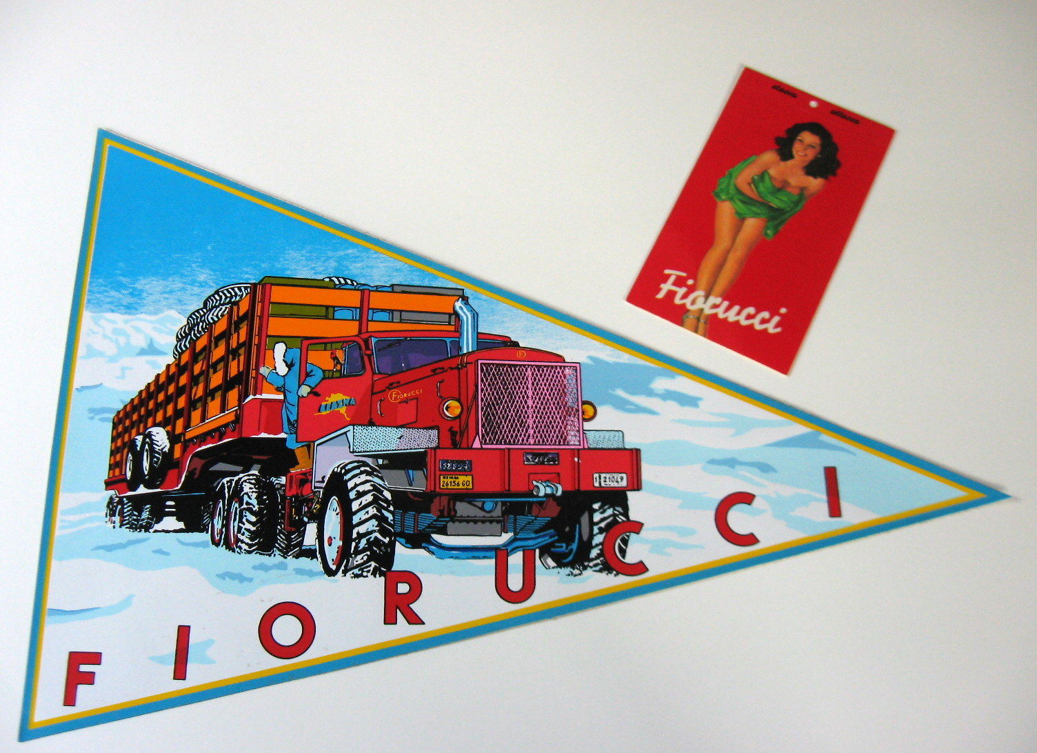 Vintage FIORUCCI GRAPHIC Red "ALASKA TRUCK" PENNANT Flag AD & PRICE TAG mcm