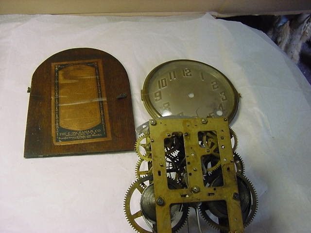 ANTIQUE INGRAHAM CLOCK WORKS & DIAL & BEZEL & PENDULUM--STEAMPUNK-GLASS IS GOOD