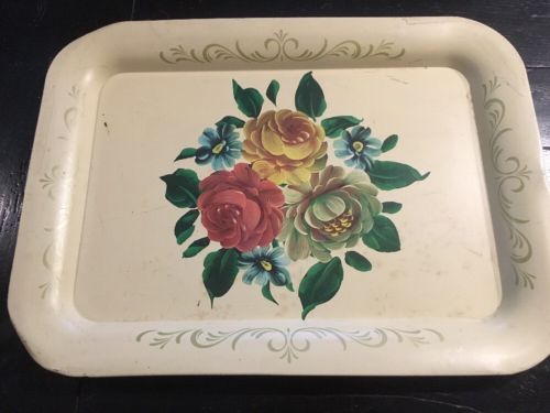 Title (ebay affiliate link): Estate Tin Metal Serving Tray Hand painted Folk Tole Toleware Country Decor *