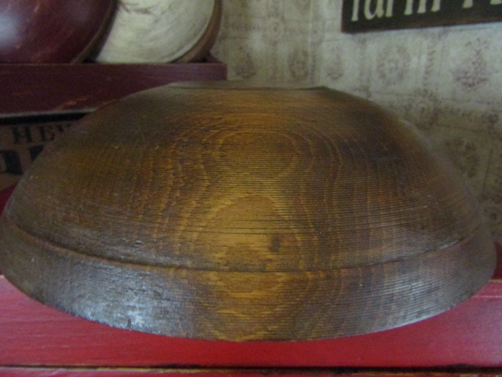 EARLY FARMHOUSE WOODEN BOWL W/LARGE 1" RIM - OUT OF ROUND