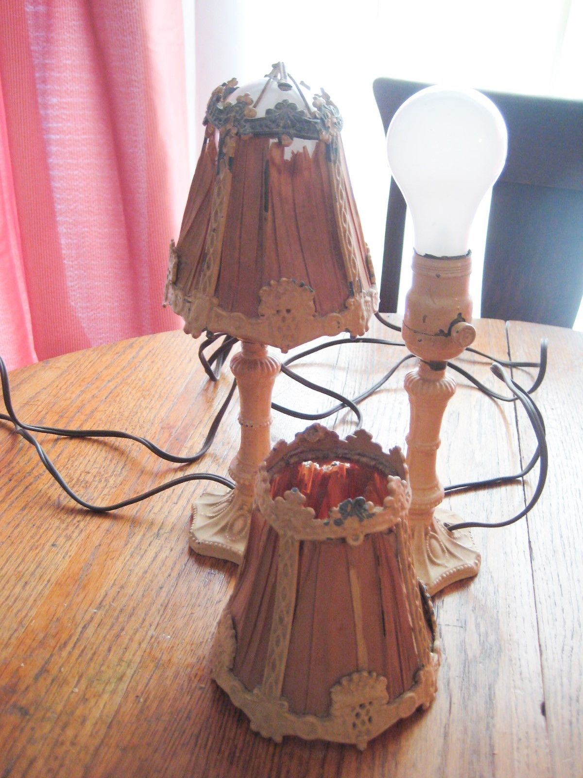 Title (ebay affiliate link): Pair of Antique Victorian Cast Metal Boudoir Lamps and Fabric Shades