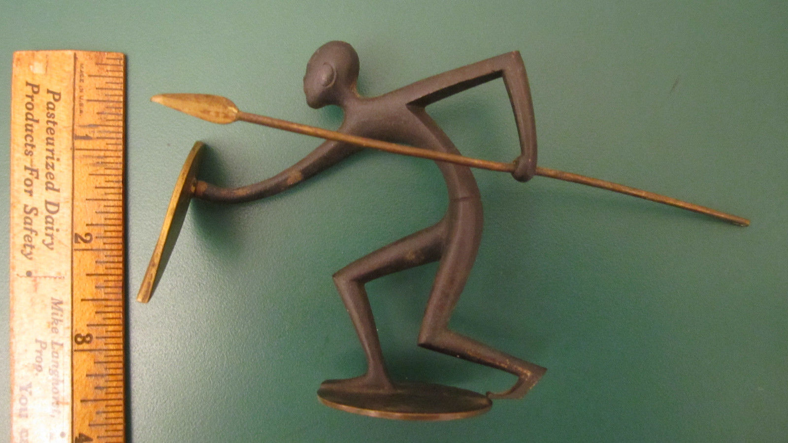 Title (ebay affiliate link): HAGENAUER Wien WHW Austria Art Deco African Warrior Shield Spear Bronze