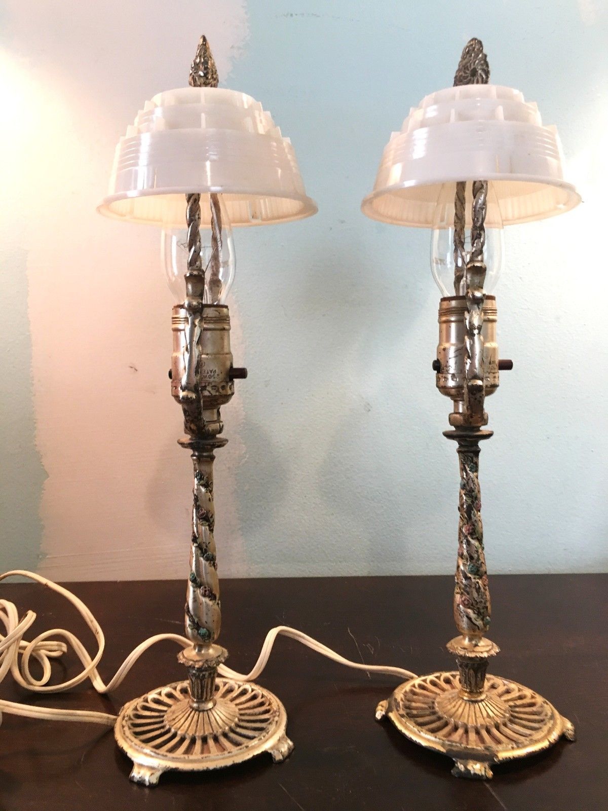 Title (ebay affiliate link): RARE VINTAGE ART DECO BOUDOIR LAMPS PR. (2) W/ CUSTOM FITTED SHADES WOW !!!!!!!!