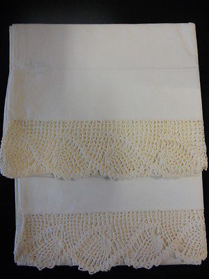 Vintage Antique Cream Ecru *Pillowcases w Crocheted Lace* Shabby Cottage Chic