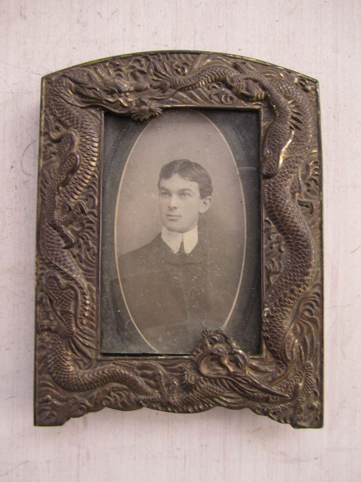 Title (ebay affiliate link): Small vintage metal picture frame with unusual dragon design - 5 1/4" x 4"