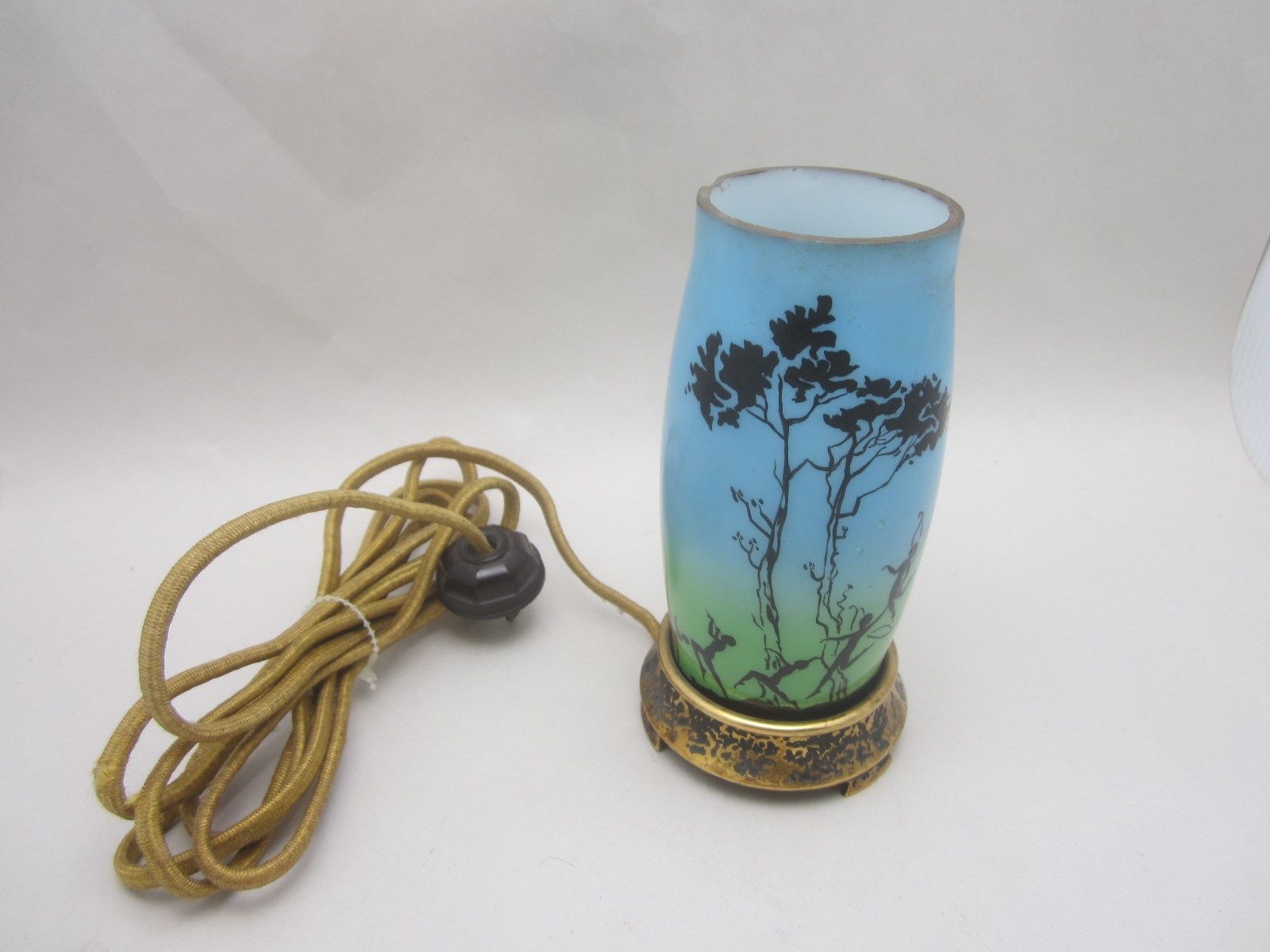 Title (ebay affiliate link): Vtg French Hand painted Nymphs Silhouette Victorian Lamp Diefenbach Bronze Base