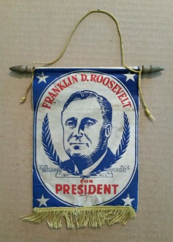 Title (ebay affiliate link): "Franklin D.Roosevelt For President" Campaign Window Banner,1930''s