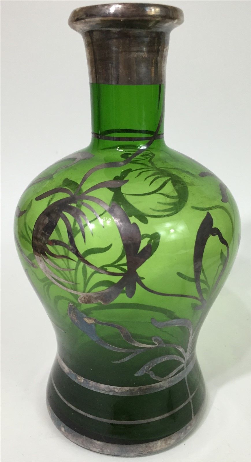 Vtg Sterling Silver Overlay Forest Green Glass Bud Flower Vase