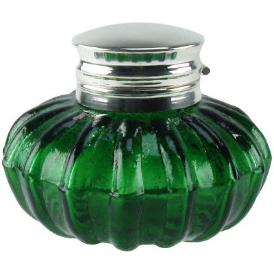 Title (ebay affiliate link): Antique/Vintage Style Silver Top/Dark Green Glass Inkwell Desk Ink Pen Pot Well