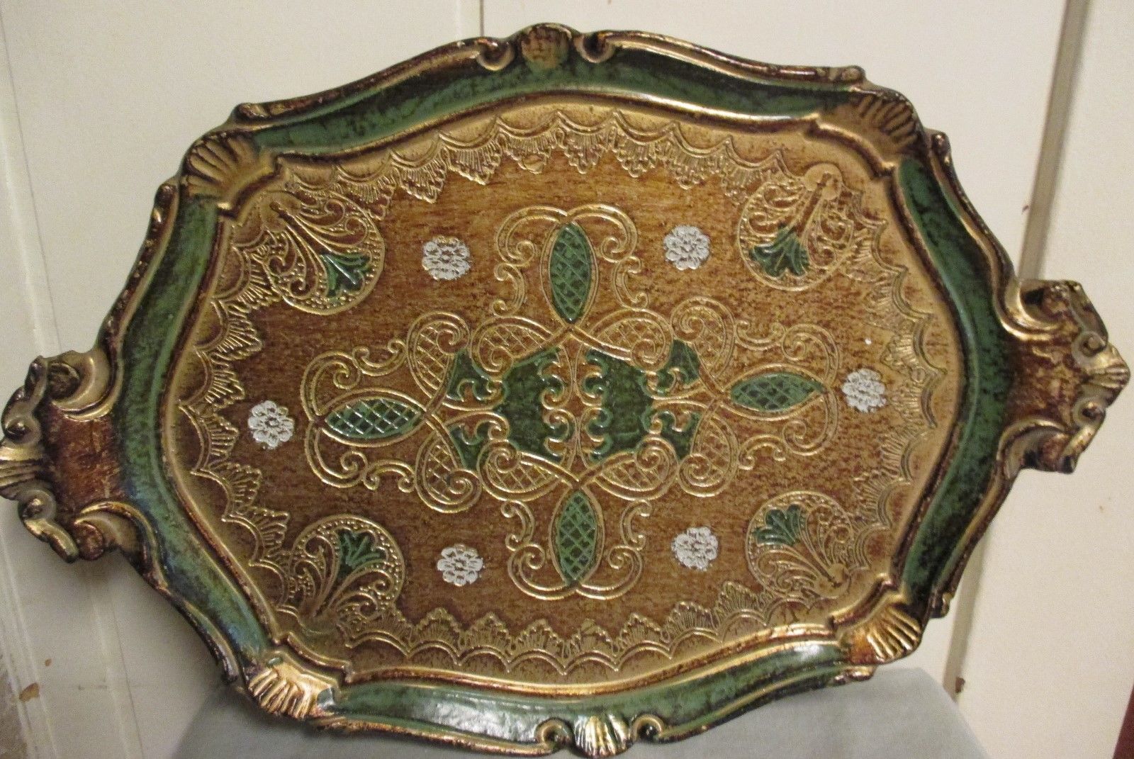 Vtg Florentine Hand made Wood Gilt Tole Tray
