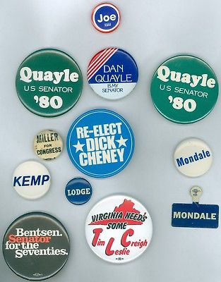 Title (ebay affiliate link): 11 Vintage 50s-90s Pre Vice President Political Pinback Buttons 1 Tab Biden Kemp