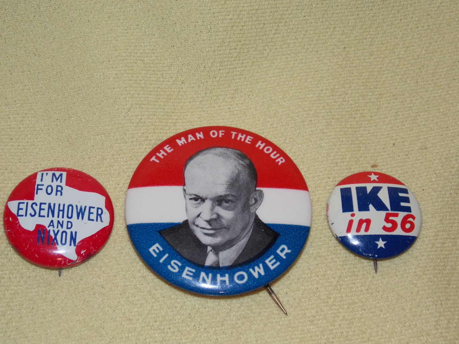 3 Pc EISENHOWER NIXON campaign pinback political button president election 1956