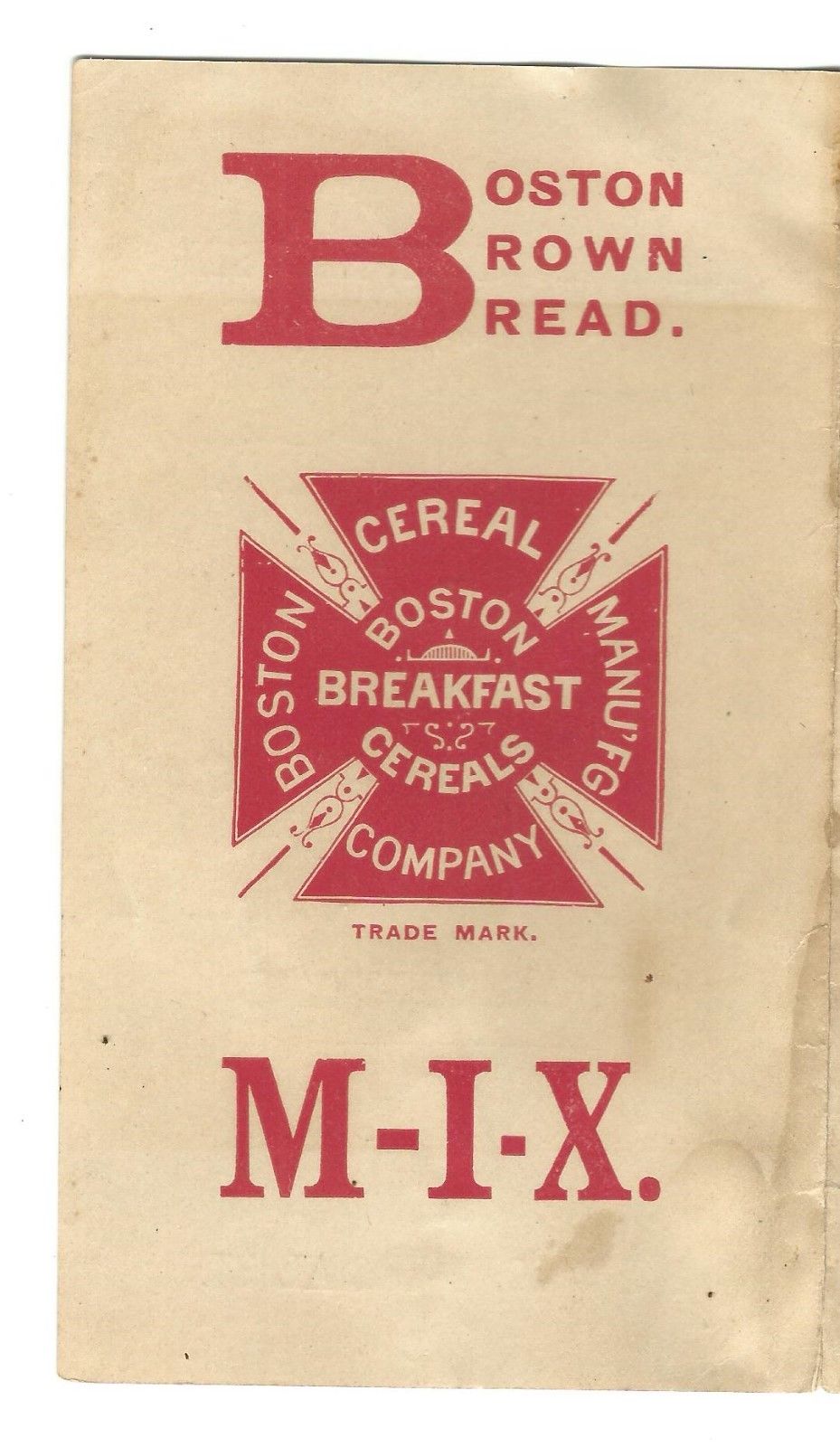 Old Trade Card Boston Brown Bread Mixture Boston Cereal Manufacturing Company