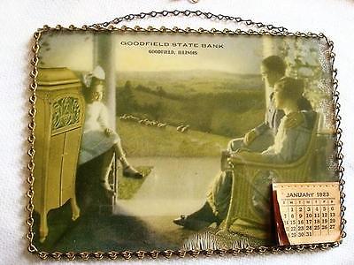 Antique Glass Chain Picture 1923 Calendar Goodfield State Bank Illinois