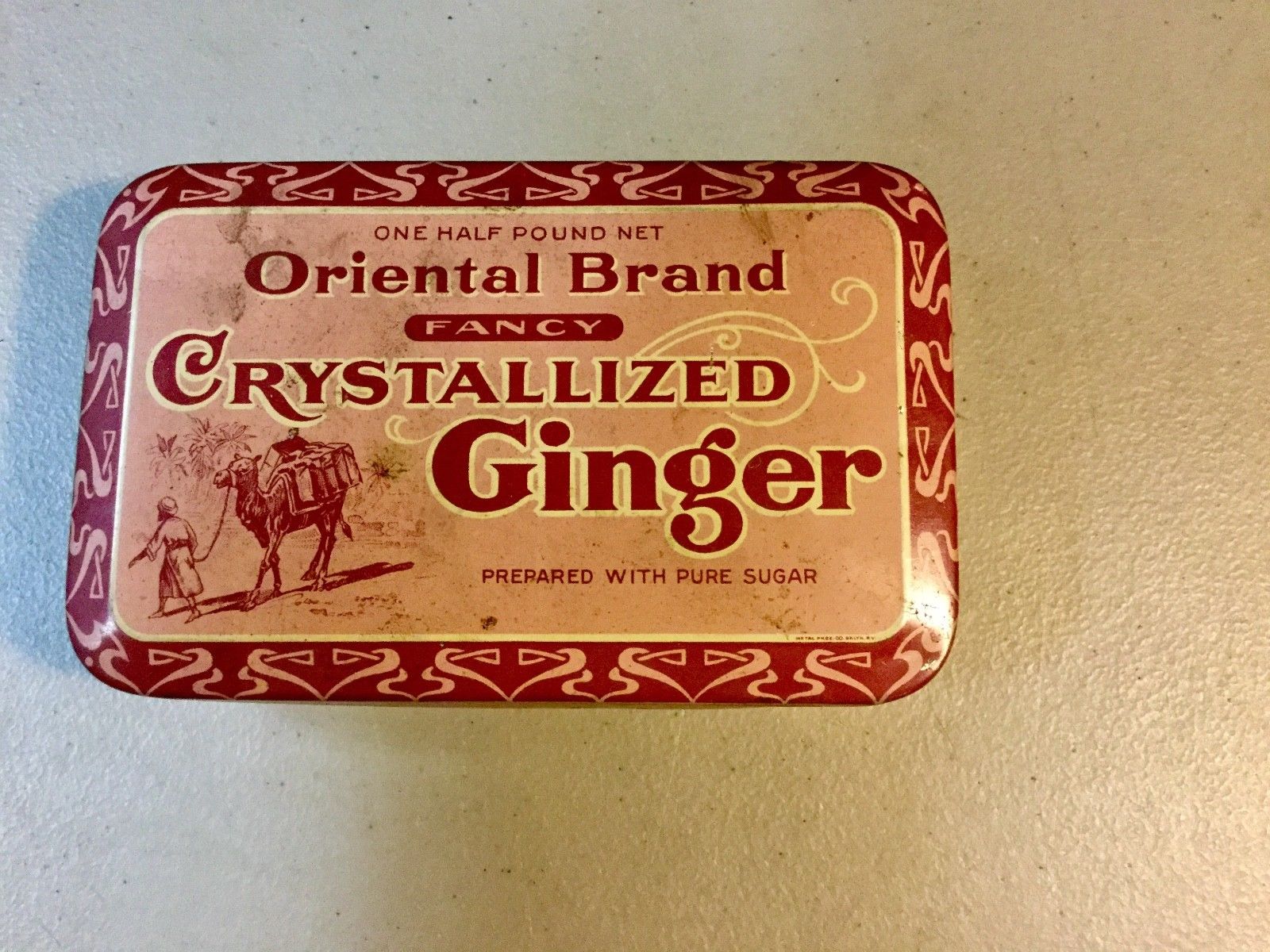 Title (ebay affiliate link): Antique ORIENTAL BRAND Crystallized Ginger Tin, Ruykhaver Bros., Jersey City, NJ