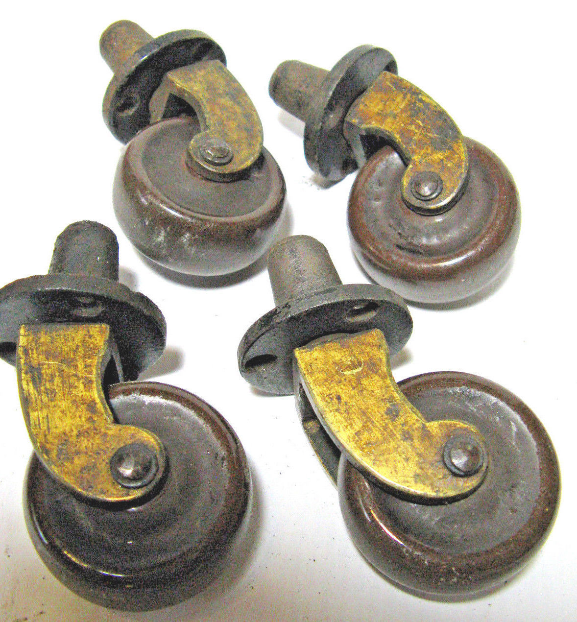 Vintage Antique CERAMIC And BRASS DARK BROWN FURNITURE CASTERS