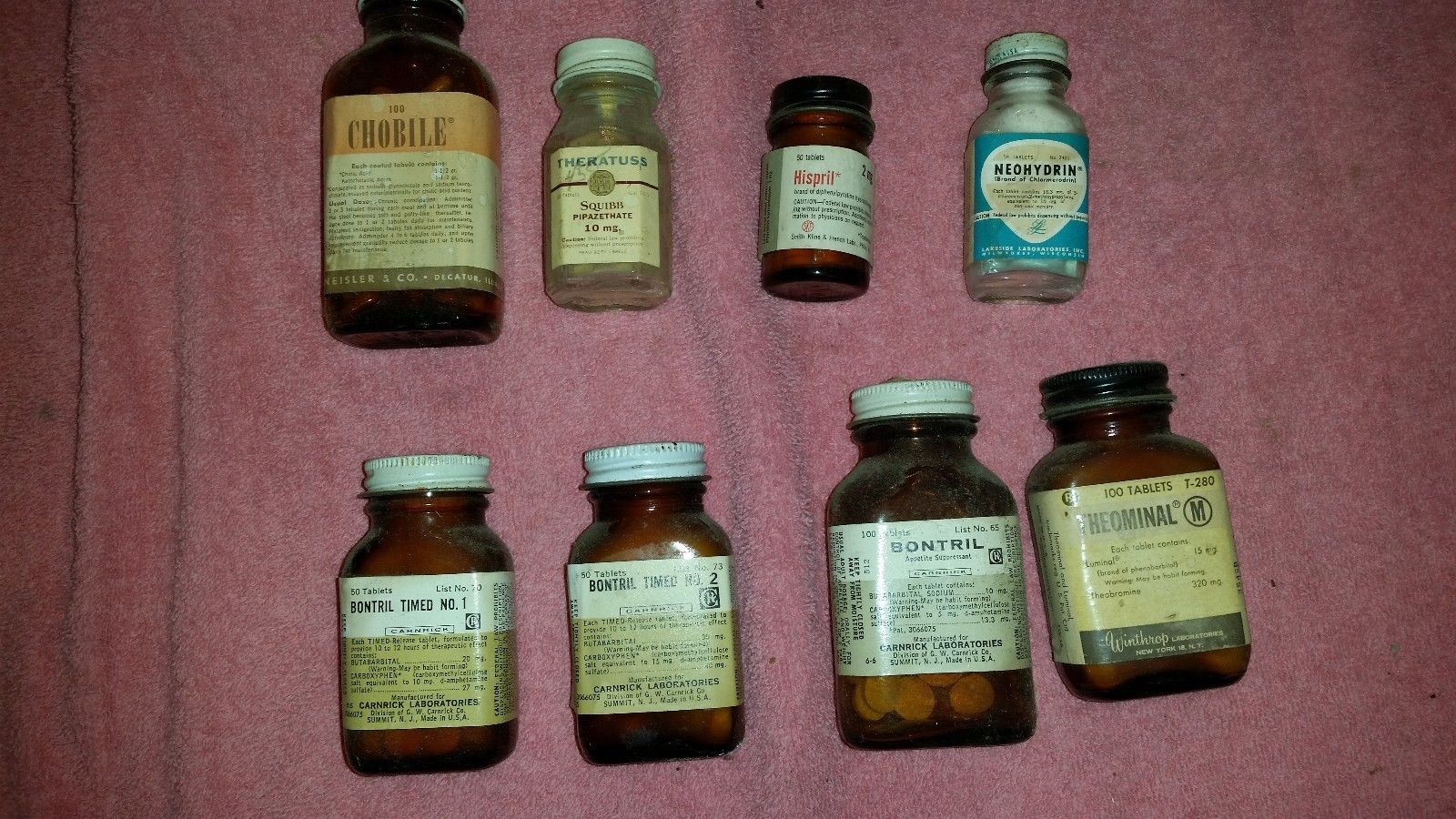 Title (ebay affiliate link): Eight (8) antique apothecary, vintage medicine bottles; Doctor or Pharmacy items
