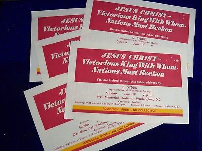 Title (ebay affiliate link): Vtg 5 1978 Victorious Convention INVITE to talk Jehovah''s Witnesses Watchtower 1