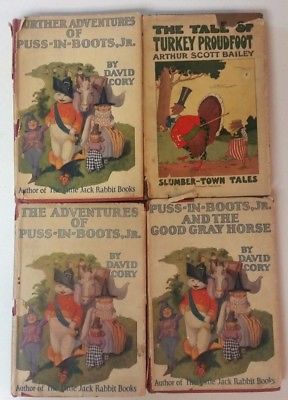 Title (ebay affiliate link): FOUR VINTAGE CHILDREN''S BOOKS - PUSS-IN-BOOTS, JR., TURKEY PROUDFOOT 1917, 1921