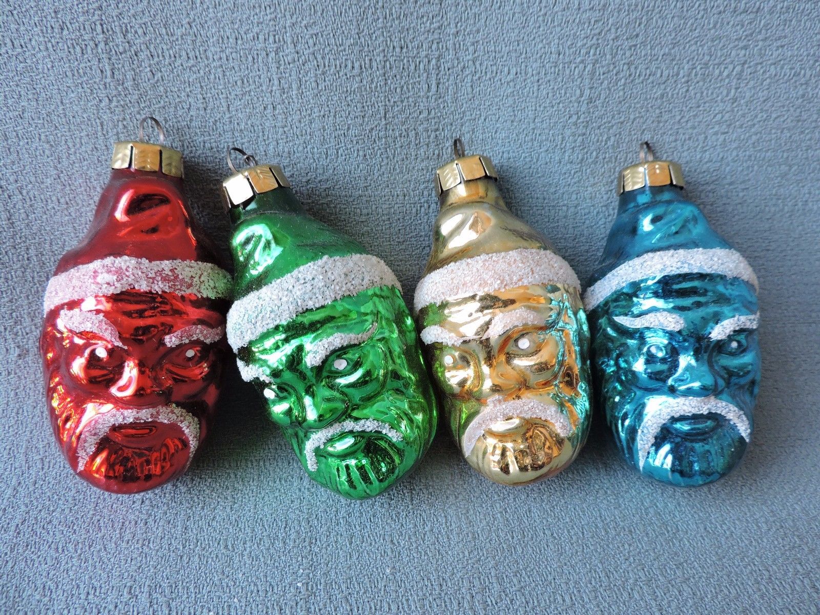 Title (ebay affiliate link): Antique German Glass Christmas Ornament LOT of 4 SANTA HEADS 1950s