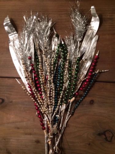 Title (ebay affiliate link): 37 Stem Antique Vintage Mercury Glass Beads Tinsel Pom Pom Foil Christmas Decor