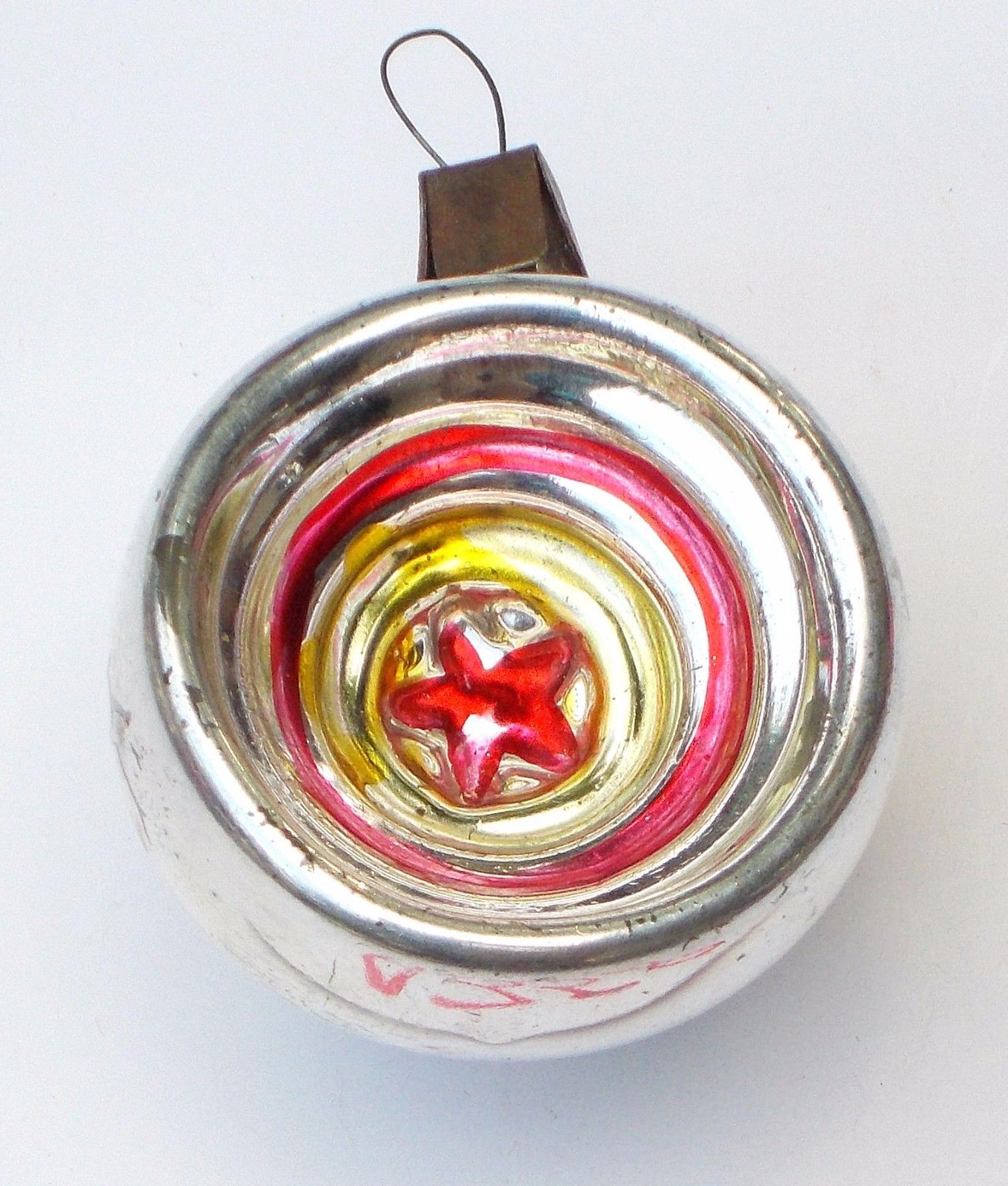 Title (ebay affiliate link): Vintage Russian Silver Glass USSR Christmas Tree Ornament Propaganda Red Star