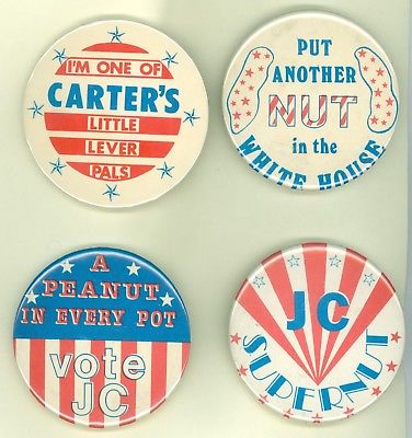 Title (ebay affiliate link): 4 Vintage 1976 President Jimmy Carter Political Campaign Pinback Buttons JC