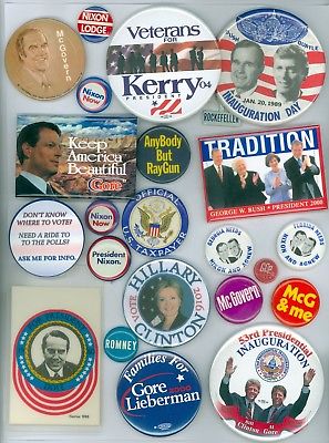 Title (ebay affiliate link): 21 Vintage Presidential Political Campaign Pinback Buttons Bush Dole Kerry McG