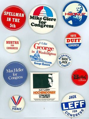 Title (ebay affiliate link): 12 Vintage 70s-80 US Congress Political Campaign Pinback Buttons Heller Spellman