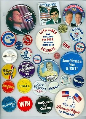 Title (ebay affiliate link): 29 Vintage Presidential Political Campaign Pinback Buttons Dukakis Loyd Jones