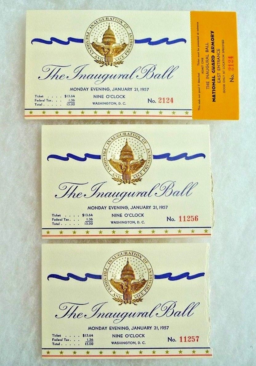 Title (ebay affiliate link): 1957 Dwight Eisenhower Inaugural Ball Tickets 3Pc Set Includes 1 w/stub 2 w/out