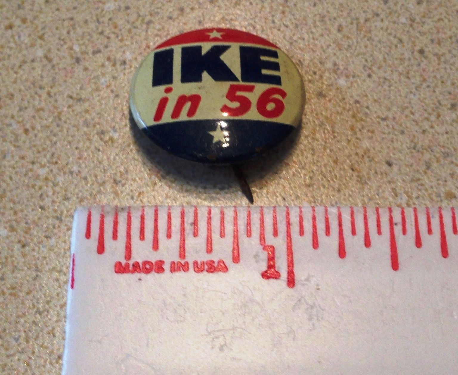 Title (ebay affiliate link): 1956 General Dwight Eisenhower campaign pin pinback button political IKE IN ''56