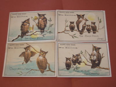 6 Victorian New Year Knoble Trade Card Owl Family Story