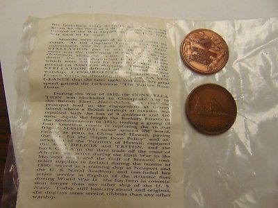 OLD RARE VINTAGE TOKEN COIN SET OF 2 US FRIGATE CONSTELLATION FIRST SHIP REPUBLI