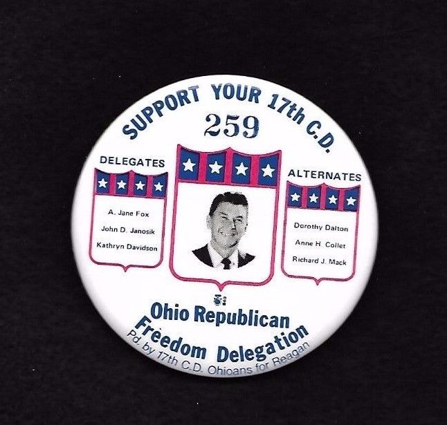 Title (ebay affiliate link): early, numbered RONALD REAGAN 1976 Ohio Delegation from 17th. CD